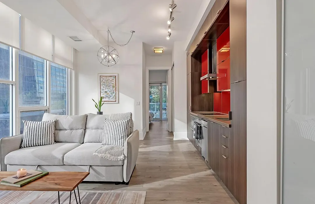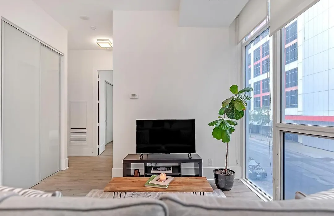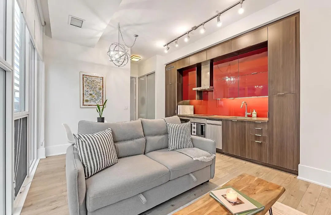 A 15-minute walk will take you to the city centre. Nathan Phillips Square is situated a few minutes' drive from this 70 m^2 apartment. The nearest airport is Billy Bishop Toronto City, which is 5 km away.